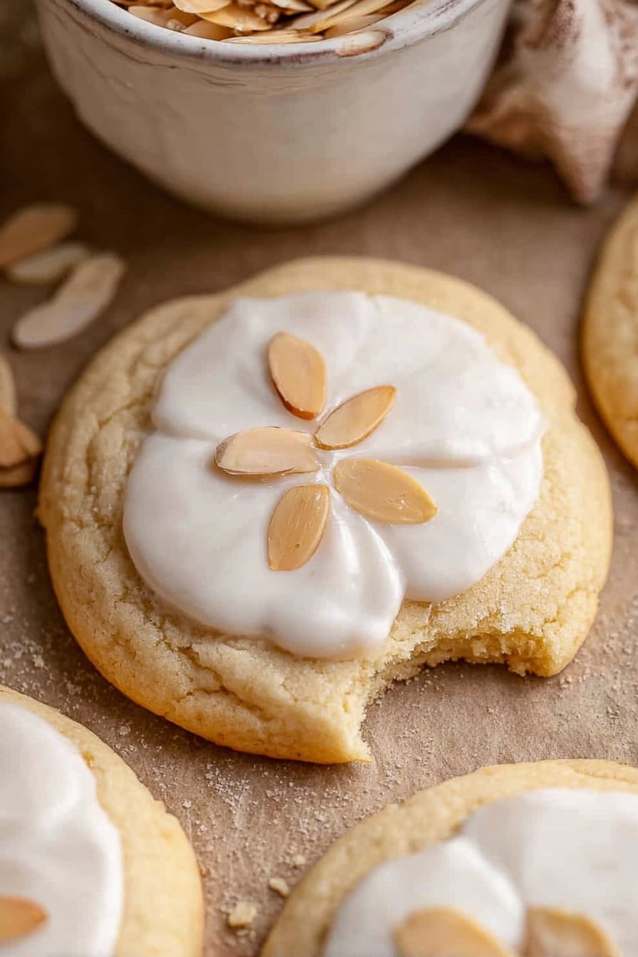 - Glaze and Garnish: Spoon the almond glaze over each cooled cookie, gently spreading it evenly. Top each cookie with sliced almonds and allow the glaze to set completely before serving.