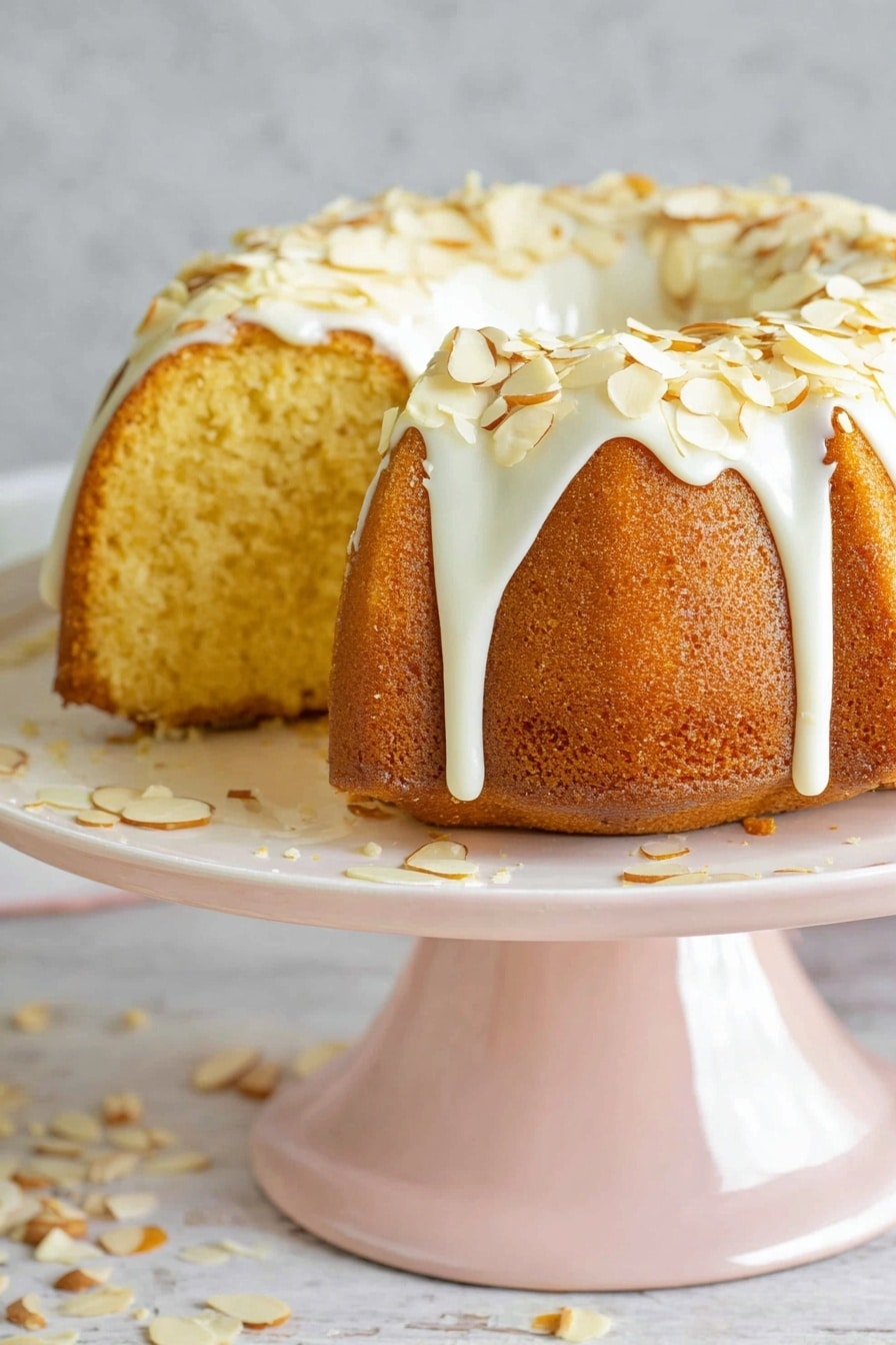 For special occasions, I like to place the glazed bundt cake on a pretty cake stand and scatter some fresh edible flowers or whole toasted almonds around the base. It instantly transforms the cake into a centerpiece. Another fun idea I discovered was serving slices with a drizzle of amaretto-spiked chocolate sauce for extra decadence.