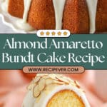 This Almond Amaretto Bundt Cake is a moist, flavorful dessert combining the nutty essence of almond extract and the sweet, warm notes of amaretto liqueur. Topped with a rich almond icing and optional sliced almonds, this cake is perfect for special occasions or a delightful treat any day.