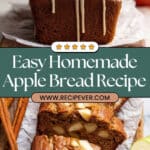 This Apple Bread is a moist, spiced quick bread loaded with tender chunks of peeled apples and a comforting blend of cinnamon and nutmeg. A luscious apple cider glaze drizzled over the top adds a perfect balance of sweetness and tang, making it an irresistible treat for breakfast, snack, or dessert.