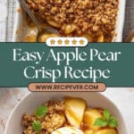 This Apple Pear Crisp Recipe is a delightful autumn dessert featuring a tender blend of baking apples and pears tossed with lemon juice, sugar, and apple pie spice, topped with a crunchy oat and pecan crumble. Baked to golden perfection, it’s perfect served warm with a scoop of vanilla ice cream or a drizzle of caramel sauce.