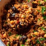 A hearty Greek-inspired Moussaka beef and rice pilaf that combines ground beef, eggplant, aromatic herbs, and basmati rice simmered in a flavorful tomato and chicken broth mixture. This one-pot meal captures traditional Mediterranean flavors with a simple cooking technique, perfect for a comforting dinner.