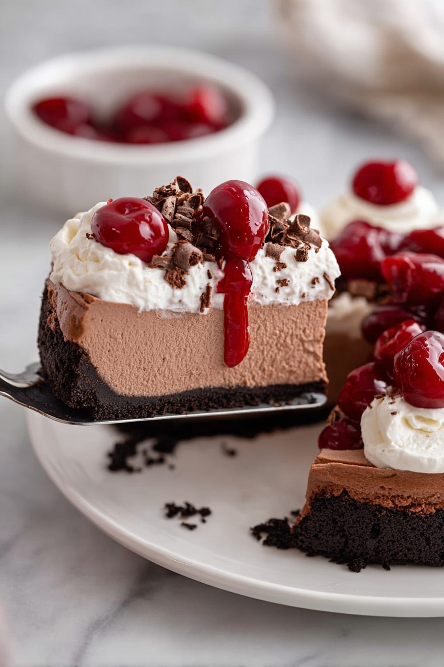 I’m a big fan of using freshly whipped cream and homemade cherry pie filling because it adds that fresh, authentic touch. I also love sprinkling chocolate shavings right before serving — it looks elegant and adds a nice textural contrast. If you have some toasted almond slivers, those add a lovely crunch and nutty flavor too.