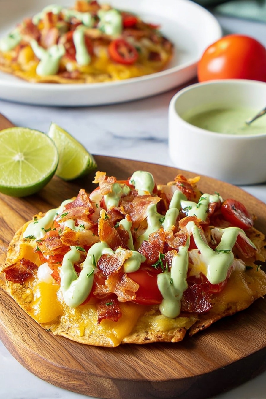 For garnishes, I like to add a sprinkle of freshly chopped chives or a few torn basil leaves—their bright herbal notes complement the creamy avocado beautifully. A light dusting of smoked paprika on top of the avocado drizzle can add a subtle smoky depth that pairs perfectly with the bacon.