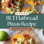 A delicious and easy BLT flatbread recipe featuring crispy bacon, fresh tomato, and shredded lettuce on warm flatbreads topped with melted cheese and a creamy avocado drizzle. Perfect for a quick lunch or light dinner.