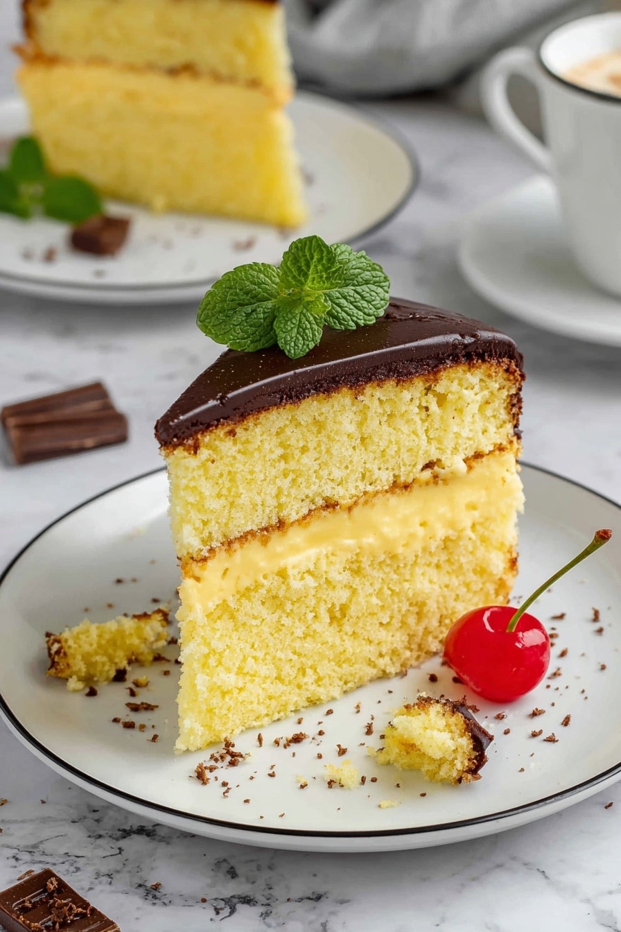 I once made mini Boston Cream Pies using cupcake pans—each had its own custard filling and chocolate glaze on top. They were a hit at a brunch! Another time, I piped whipped cream rosettes around the edges and sprinkled a few cocoa nibs for a rustic look. Presentation-wise, you can get playful with piping the custard or swirling the glaze before it sets to make it your own.