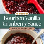 This Bourbon Vanilla Cider Cranberry Sauce blends tart fresh cranberries with smooth bourbon, sweet apple cider, and aromatic vanilla bean, creating a rich and flavorful condiment perfect for holiday meals or anytime you want to elevate your cranberry sauce with a boozy twist.