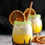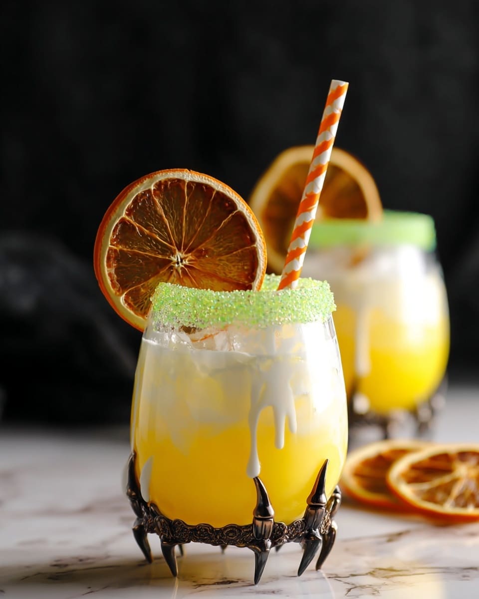 - Eye-Catching Presentation: The green sugar rim and dried orange slice garnish make it look way fancier than it is.