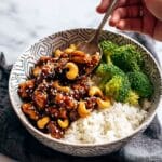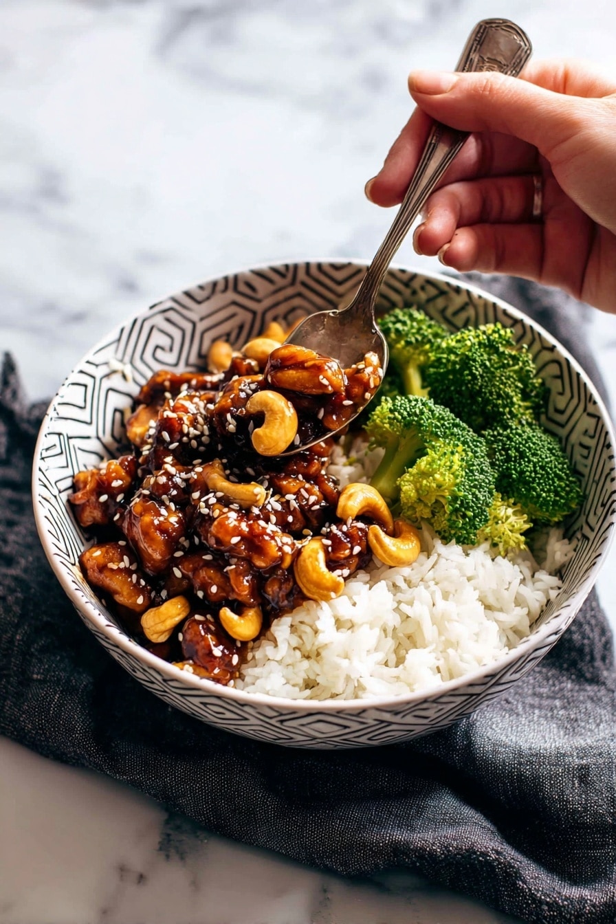 You can swap out chicken for firm tofu or tempeh. Just follow the same batter and frying steps. Press the tofu well beforehand for the best texture, and don’t forget to toast those cashews for extra flavor.