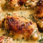 This Stuffed Chicken Thighs recipe features tender boneless skinless chicken thighs filled with a creamy mixture of spinach, ricotta, cream cheese, garlic, and mozzarella. The chicken is pounded thin, rolled with the flavorful filling, seared to develop a golden crust, and then baked to juicy perfection. It’s an easy, comforting, and impressive dish perfect for weeknight dinners or entertaining guests.