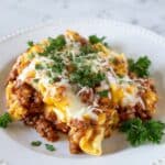 This Easy Cheesy Crockpot Tortellini with Ground Beef is a comforting, hands-off meal perfect for busy days. Ground beef and onions are browned and combined with marinara and diced tomatoes, then slow-cooked to meld the flavors. Cheese-filled tortellini and a blend of mozzarella and cheddar cheeses are added near the end, creating a creamy, cheesy casserole that’s hearty and satisfying. Garnished with fresh parsley, this dish is simple to prepare and sure to please the whole family.