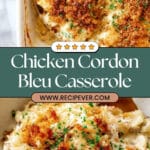 This Chicken Cordon Bleu Casserole is a comforting and cheesy dish combining shredded chicken, ham, and a creamy Gruyere and Monterey Jack cheese sauce, topped with a crunchy golden panko breadcrumb crust. Perfect for a hearty family meal, this casserole offers classic flavors of chicken cordon bleu in an easy-to-make baked format.
