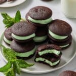 These Chocolate Whoopie Pies with Mint Filling are a delightful treat featuring rich, chocolatey cake sandwiches filled with a smooth and refreshing peppermint buttercream. Perfectly soft and cakey, these whoopie pies combine the comforting allure of classic chocolate with a cool minty twist, ideal for holiday gatherings or any special occasion.