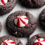 Once cooled, store your Chocolate Peppermint Kiss Cookies in an airtight container at room temperature for up to three days. I like to layer them with parchment paper between so they don’t stick together or break, especially if you’re stacking for storage.
