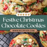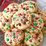 These festive Christmas Chocolate Chip Cookies combine classic semisweet and white chocolate chips with colorful red and green M&Ms and sprinkles, perfect for holiday celebrations. Soft, chewy, and bursting with holiday spirit, these cookies are a delightful treat to bake and share during the Christmas season.