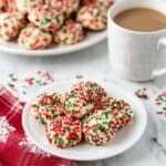 These festive Christmas Sprinkle Pudding Cookies are soft, chewy, and bursting with holiday cheer. Made with vanilla pudding mix for extra moisture and rolled in colorful Christmas sprinkles, these cookies are perfect for holiday parties and cookie exchanges. They bake up light golden around the edges with a tender center and a fun crunch from the sprinkles.