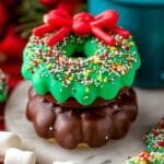 These festive Christmas Wreath Cookies are a delightful holiday treat that combine marshmallow chocolate pinwheel cookies with green melting chocolate, Twizzlers bows, and colorful Christmas sprinkles. Perfect for holiday parties or as a fun family activity, these cookies are easy to decorate and look charmingly festive.