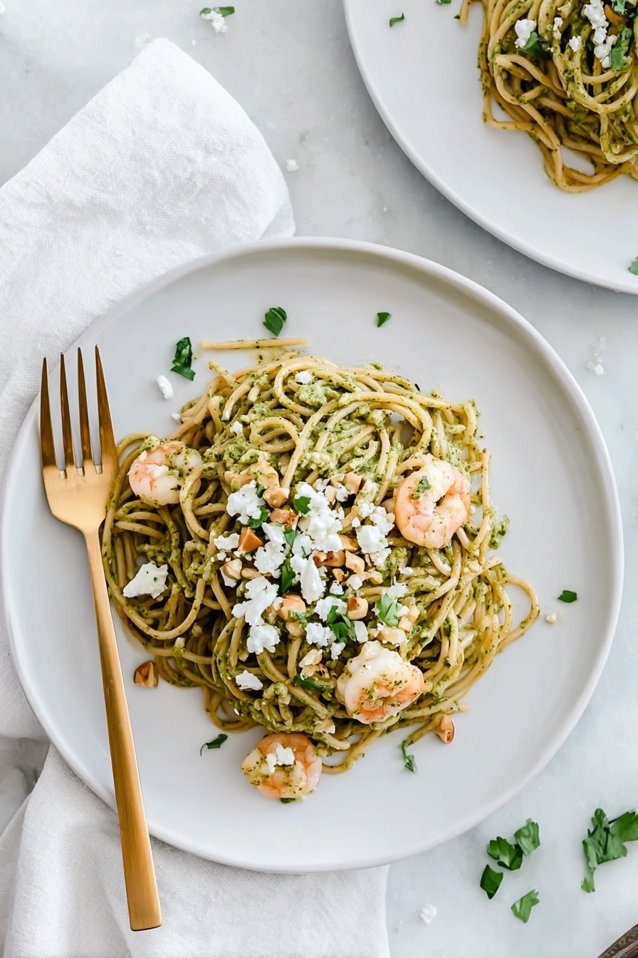 I love how these ingredients come together to create a pesto that’s both silky and vibrant — and when paired with shrimp, it’s a perfect balance of textures and flavors. When shopping, aim for fresh cilantro and good-quality pistachios; it really makes a difference!