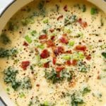 - Serve and Garnish: Ladle the soup into bowls and garnish with sliced green onions and chopped cooked bacon for a savory finish.