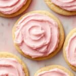 I typically keep it simple with the frosting tinted the classic soft pink, but I also love adding a light sprinkle of sanding sugar or edible glitter for a bit of sparkle—especially during holidays or birthday parties. Fresh berries on the side also make these feel extra special when serving.