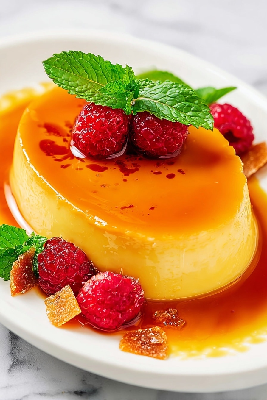 I usually keep it simple because the flan is already rich and flavorful, but a few fresh berries and a sprig of mint provide a lovely fresh contrast. Sometimes I dust a tiny bit of cinnamon on top for a cozy touch. I’m also a fan of lightly toasted coconut flakes on occasion—they add texture and a tropical vibe that’s just delightful.