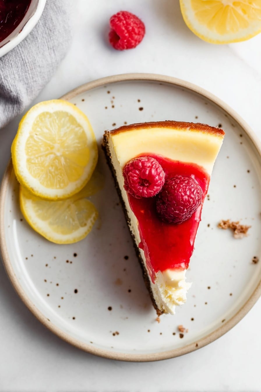 I love topping this cheesecake with extra fresh raspberries and a few mint leaves for a pop of color and freshness. Sometimes I dust a tiny bit of powdered sugar over the top just before serving, especially for gatherings—it makes it look extra special and adds a delicate sweetness that’s irresistible.