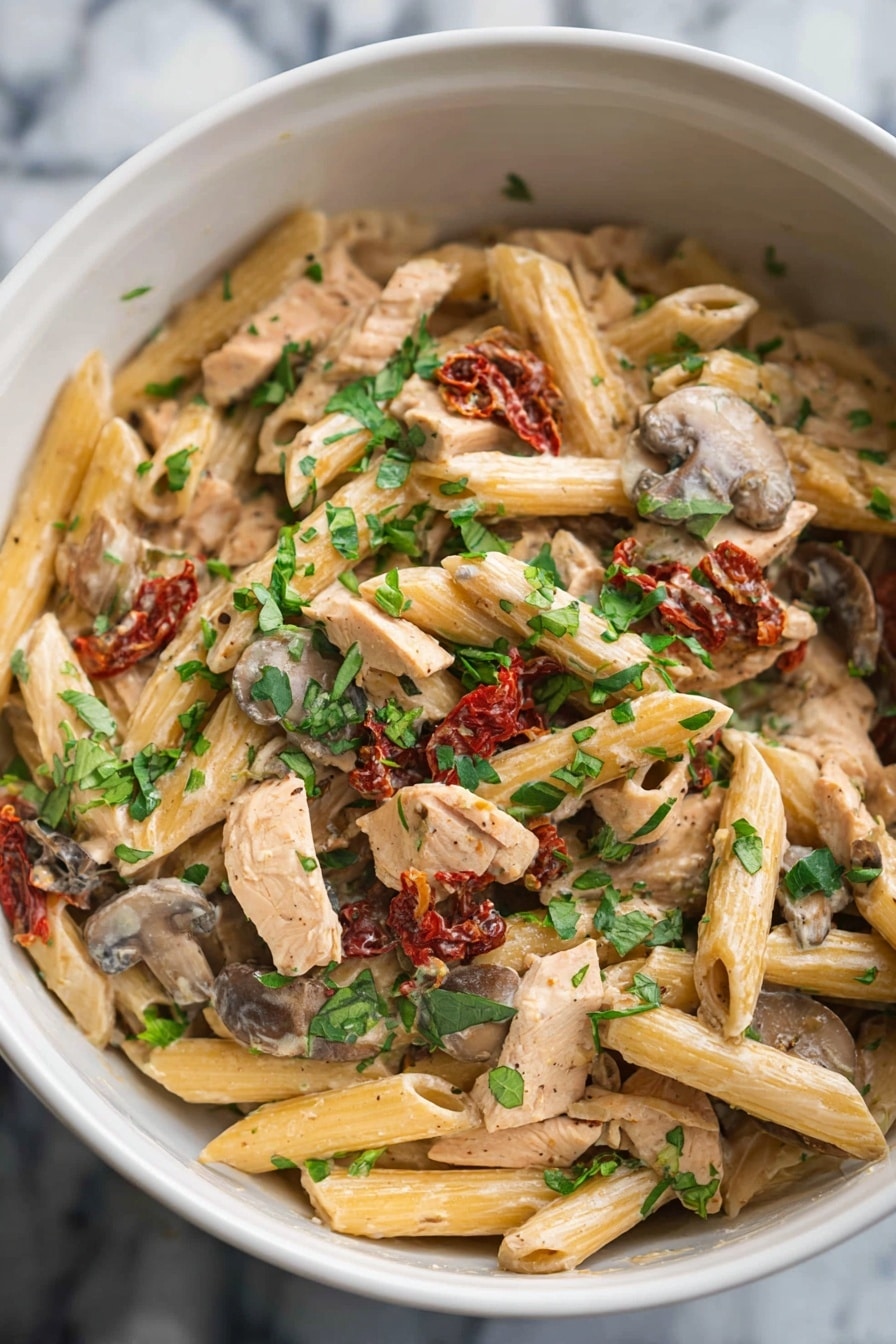 This Crock Pot Creamy Chicken Pasta is an easy, comforting slow-cooker meal that combines tender, seasoned chicken with a rich and creamy sauce, mushrooms, sun-dried tomatoes, spinach, and pasta. Perfect for busy days, this recipe delivers juicy chicken infused with Italian flavors, cooked low and slow, then mixed with al dente pasta for a delightful one-pot dinner.