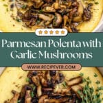 - Serve: Spoon the creamy polenta into serving bowls and top with the garlicky mushrooms. Optionally, add an extra sprinkle of Parmesan cheese before serving for enhanced richness.