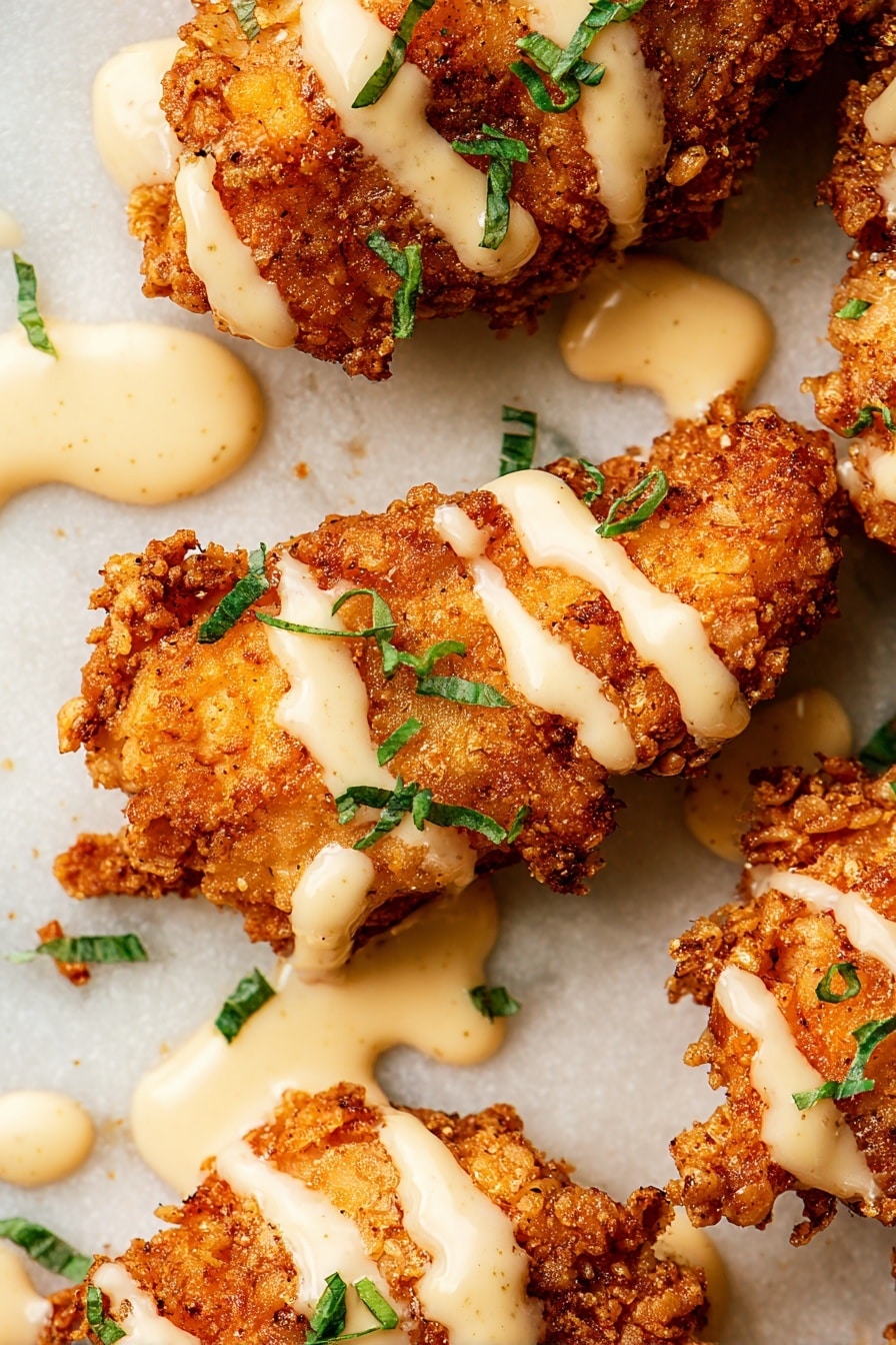 I love sprinkling fresh chopped parsley on top—it adds a pop of color and a fresh herbal brightness that just lifts the richness of the fried tenders. Sometimes I add a squeeze of lemon for extra zing, especially in warmer months.