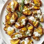 PrintCrispy Smashed Potatoes with Garlic Feta Dipping Sauce Recipe