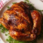 • This recipe yields 4 to 6 servings depending on the size of the chicken.