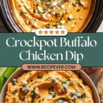 This Crockpot Buffalo Chicken Dip is a creamy, spicy, and cheesy appetizer perfect for game days, parties, or casual gatherings. Made with shredded rotisserie chicken, cream cheese, cheddar, Buffalo sauce, and ranch dressing, it’s slow-cooked to perfection and topped with blue cheese and fresh chives. Serve it warm with baguette slices, celery sticks, and carrots for a crowd-pleasing dip that’s easy to make and irresistibly flavorful.