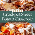 This Crockpot Sweet Potato Casserole is a warm, comforting dish perfect for holidays or weeknight dinners. Sweet potatoes are cooked slowly with a buttery brown sugar mixture, then topped with melted marshmallows and crunchy pecans for a deliciously sweet and textured side that will please the whole family.