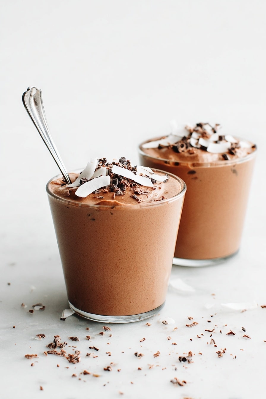 - Serve with Toppings: Pour the shake into a glass and top with coconut whipped cream, chopped hazelnuts, and pieces of dark chocolate for extra indulgence.