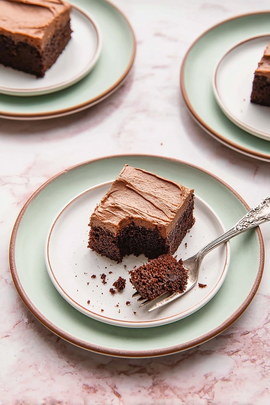 I usually keep garnishes simple because the cake itself is pretty rich—just a dusting of cocoa powder or some chocolate shavings on top looks elegant and adds an extra hint of chocolate. Sometimes I sprinkle a few fresh raspberries or a light dusting of powdered sugar for contrast. If you like nuts, toasted pecans provide a nice crunch against the soft, moist crumb.