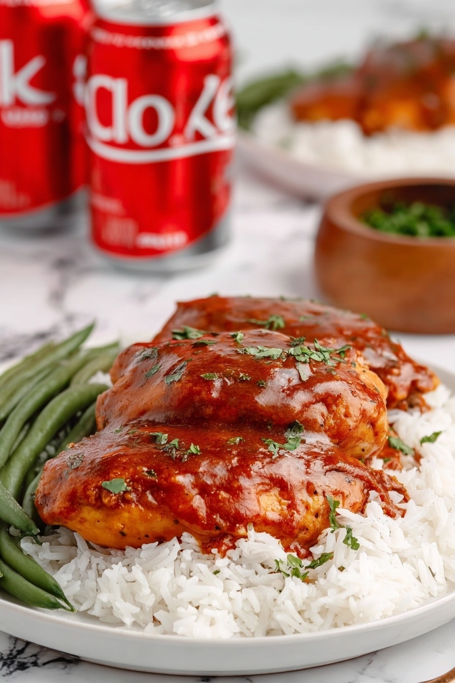 This Diet Coke Chicken pairs beautifully with fluffy white rice or jasmine rice to soak up all that saucy goodness. I also like serving it alongside steamed mixed vegetables or crisp green beans for a balanced meal. If I’m in a hurry, frozen veggies tossed with a bit of garlic make a quick, tasty side without fuss.