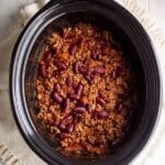 - Prepare Beans: Rinse and drain the canned kidney beans thoroughly, then add them directly into the crock pot with the meat mixture.