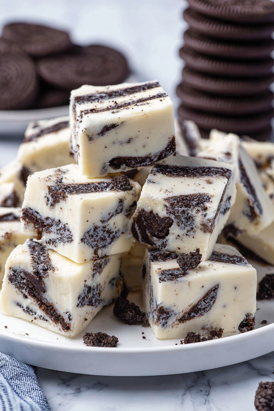 I love adding a few fresh Oreo halves on top of the fudge before it sets for a fun, decorative touch. Sometimes, I’ll sprinkle a tiny pinch of sea salt over the top to balance the sweetness—it’s a game changer!