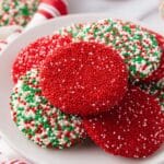Celebrate the holiday season with these festive Christmas Sprinkle Cookies. Made with a sugar cookie mix combined with cream cheese and butter for a soft, tender texture, this recipe highlights colorful red and green dough rolled in vibrant sprinkles. Perfectly baked into delightful, soft cookies, they bring cheer to any holiday gathering or cookie exchange.