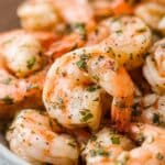 - SPRINKLE: Add half of the chopped parsley along with the cubes of butter. Swirl the pan gently so that the butter melts slowly over 2-3 minutes, forming a rich, thick sauce that coats the shrimp beautifully.
