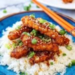 This Ginger Chicken Recipe features tender, crispy fried chicken strips coated in a spiced flour breading and tossed in a flavorful, spicy-sweet ginger soy sauce. Garnished with sesame seeds and green onions, it’s a delightful dish perfect for a comforting meal with an Asian-inspired twist.