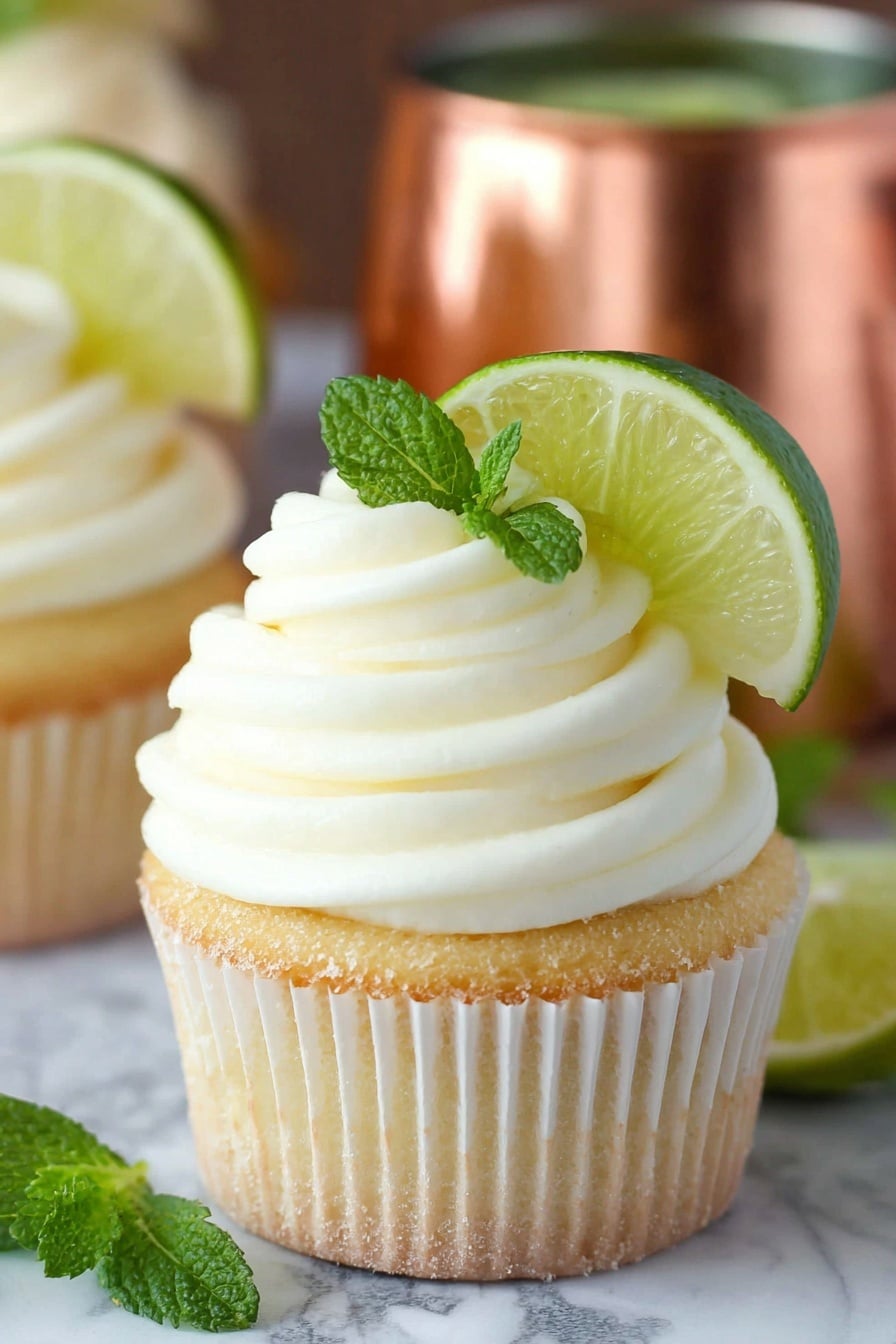 For special occasions, I’ve served these cupcakes in copper mugs (the classic Moscow Mule vessel) lined with parchment paper for easy removal—it’s playful and thematic! Another fun idea is to plate them on a tray garnished with fresh lime slices and crystallized ginger candies for a little extra flair.