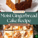 For special occasions, I’ve layered this gingerbread cake with cream cheese frosting into a multi-layer cake for a stunning holiday centerpiece. Dusting with edible gold glitter or topping with small gingerbread cookies instantly upgrades the look and makes it festive and fun.
