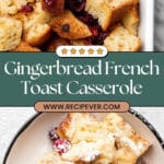 Every ingredient in this Gingerbread French Toast Casserole Recipe works together to create a flavorful, custardy delight. I recommend using a crusty, dense bread to soak up all those warming spices and custard without turning into mush.