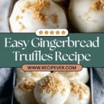 Delightfully easy and festive Gingerbread Truffles featuring crushed gingersnap cookies combined with creamy cream cheese, coated in smooth white chocolate, and finished with a touch of crushed gingersnap topping. Perfect for holiday parties and gifting, these bite-sized treats capture the warm, spicy flavors of gingerbread in an indulgent, no-bake truffle form.
