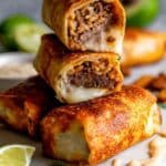These Grilled Cheese Burritos are a flavorful fusion of Mexican rice, seasoned ground beef taco meat, and melted Mexican cheese all wrapped in large burrito-sized tortillas. With a zesty chipotle mayo and creamy nacho cheese sauce, they are crispy, cheesy, and perfect for a satisfying meal. The rice is cooked with tomato sauce and spices for an authentic touch, and the burritos are grilled on a skillet to golden perfection.