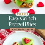 I store any leftover Grinch Pretzel Bites in an airtight container at room temperature for up to a week. Just make sure they’re fully set before sealing, or the candy coating can get sticky and lose its perfect snap.
