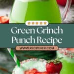 This Grinch Punch recipe is a festive and refreshing holiday beverage that combines green Hawaiian punch with lemon-lime soda and lime sherbet, garnished with heart-shaped strawberry slices to add a cheerful, colorful touch. Perfect for holiday parties, it’s easy to prepare and loved by kids and adults alike.