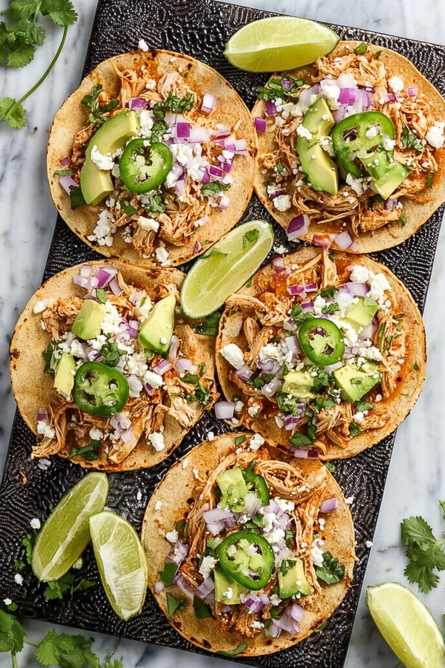 For a fun taco night, I sometimes lay out all the toppings buffet-style so everyone can build tacos exactly to their liking. Another idea I’ve tried is serving the shredded chicken atop crispy tostada shells for a crunchy twist — my guests loved the texture contrast!