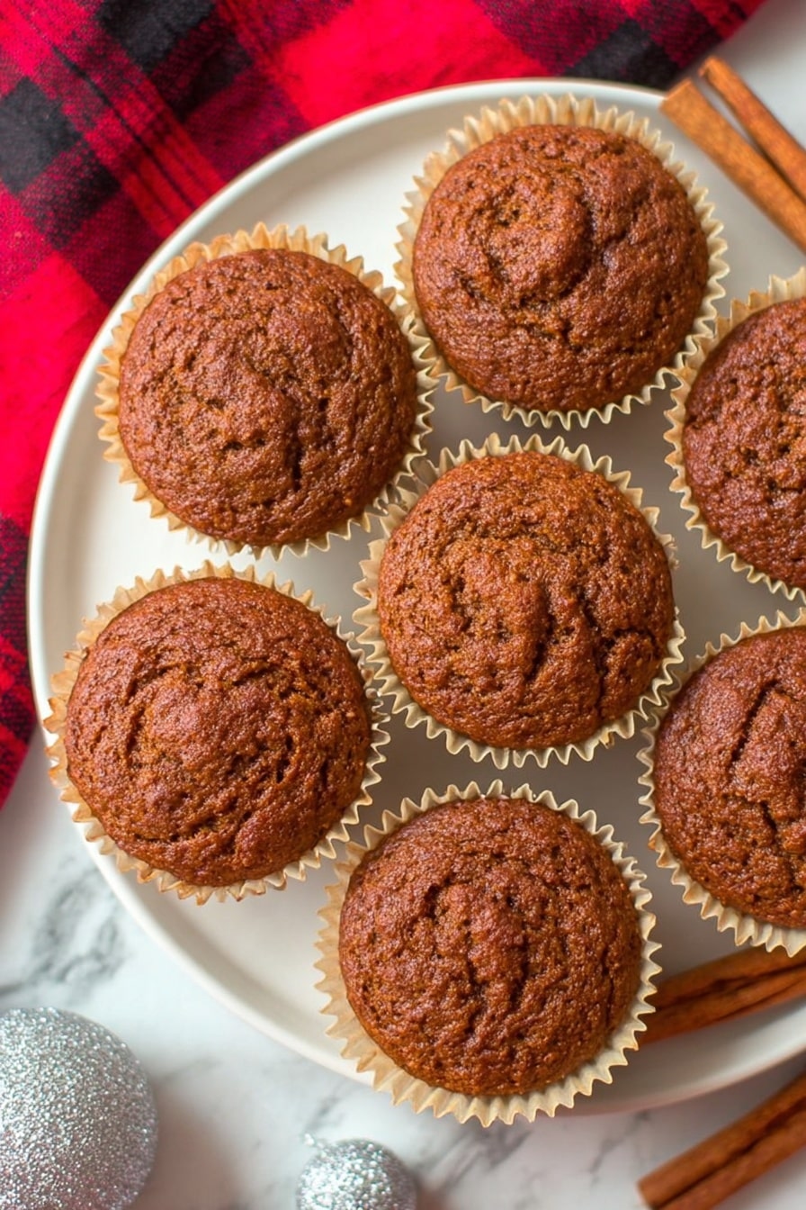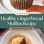 I love topping these muffins with a light dusting of ground cinnamon or a drizzle of a simple yogurt glaze to complement the gingerbread flavor. Sometimes, a spread of softened butter or nut butter turns them into an afternoon delight! For the holidays, a little cream cheese frosting works great too.